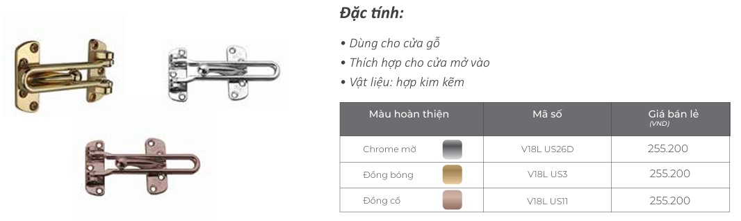 Yale cung cấp nhiều loại chốt cho cửa gỗ: